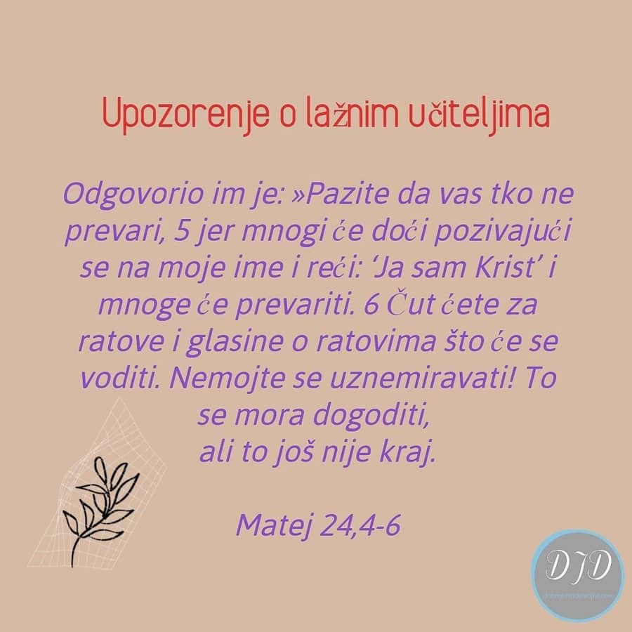 Isus je rekao svojim učenicima da prije nego što se ponovno vrati,povećati će se bezakonje i ljubav će kod mnogih ohladnijeti. Usred njegove nevolje, ljudi će tražiti nekoga da dođe i spasi ih. Mnogi će upasti u prevaru lažnih učitelja koji će ih odvesti od pravoga puta. Isus im je rekao da paze da ih nitko ne zavede. Samo je On put,istina i život.